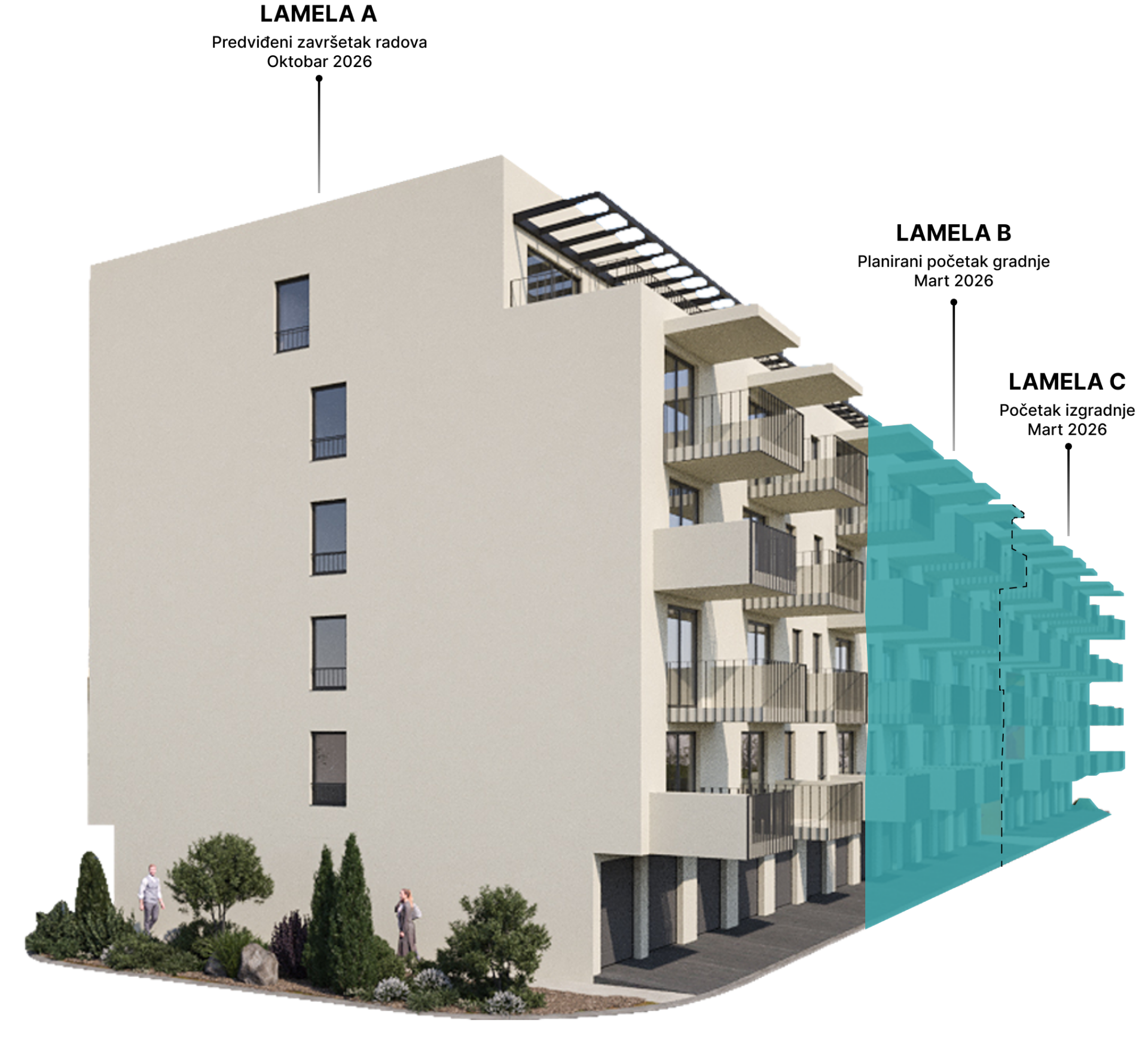 Lokacija pruža ne samo prekrasne poglede, već i mir i privatnost, jer je zgrada udaljena od gradske gužve, ali ipak u blizini svih važnih društvenih događanja. Planirana izgradnja lokalnog igrališta za djecu dodatno obogaćuje zajednicu, pružajući stanarima mogućnost da stvore vlastiti mikrosvijet izvan svojih domova.